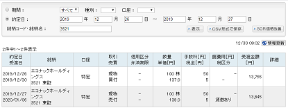 ※実は12月27日の売り注文は手仕舞いのため出した注文で利確のためのものではありません。12月30日を待ってからの売り注文ではぎりぎりになってしま欲が出ると思ったのです。